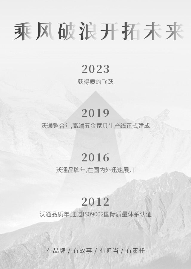 沃通五金將積極弘揚中國家具文化,綜合國際家具潮流,運用無限的創(chuàng)意,設計生產(chǎn)出大量造型美觀,引領時代潮流的新產(chǎn)品。